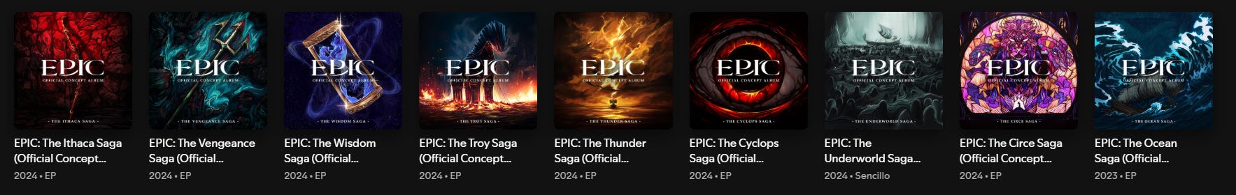 ‘Epic: The Musical’ es una serie de nueve álbumes musicales conceptuales, denominados “sagas”, escritos y producidos en su totalidad por el actor y cantautor puertorriqueño Jorge Rivera-Herrans. Publicado entre 2022 y 2024, este proyecto se inspira, además de en la propia obra de Homero, en distintos géneros musicales, el teatro musical moderno, el anime y los videojuegos.